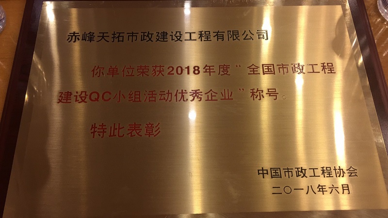 首頁(yè)/ 公司新聞/ 通知公告/ 中國(guó)市政工程協(xié)會(huì)2018年度全國(guó)市政工程建設(shè)優(yōu)秀QC小組活動(dòng)成果表彰會(huì)公司榮獲“全國(guó)市政工程建設(shè)QC小組活動(dòng)優(yōu)秀企業(yè)”稱號(hào)